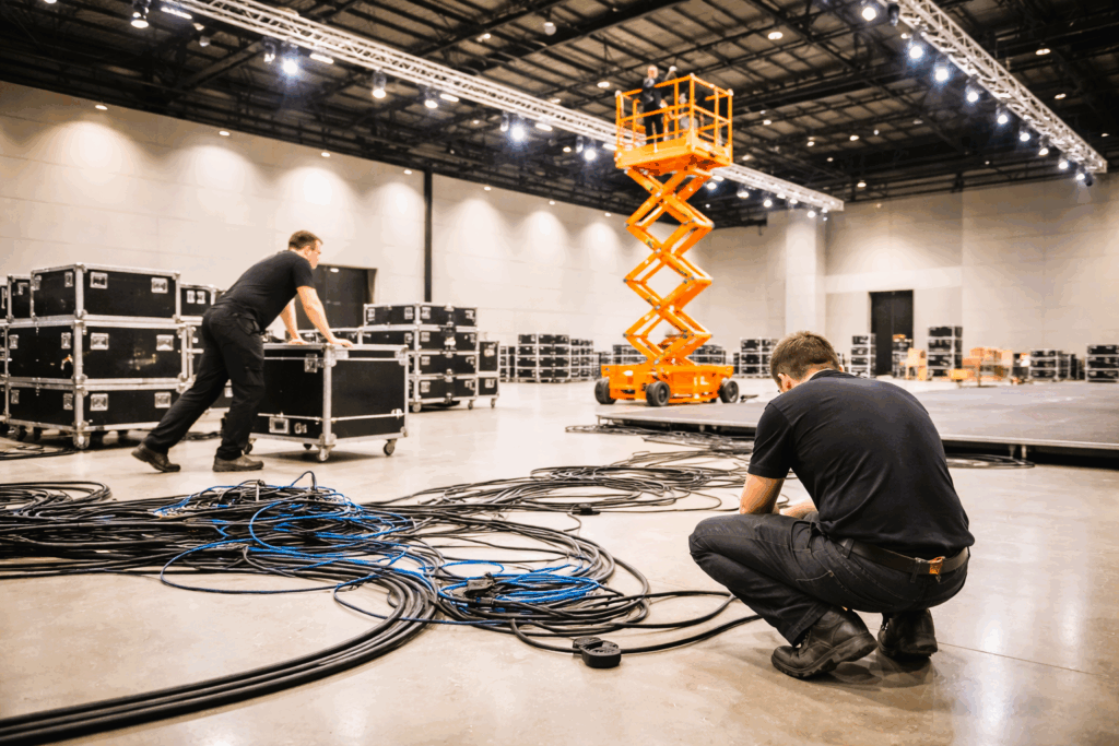 Unsere Technikversteher und Mitdenker stellen sicher, dass jede technische Komponente perfekt funktioniert. Wir sind immer einen Schritt voraus und suchen innovative Lösungen, die Ihre Anforderungen übertreffen. So können wir sicherstellen, dass Ihre Veranstaltung von Beginn an ein Erfolg wird. Wir sind die „Geht nicht, gibt’s nicht“-Typen, die keine Herausforderung scheuen und immer eine Lösung finden – egal wie komplex sie auch sein mag.